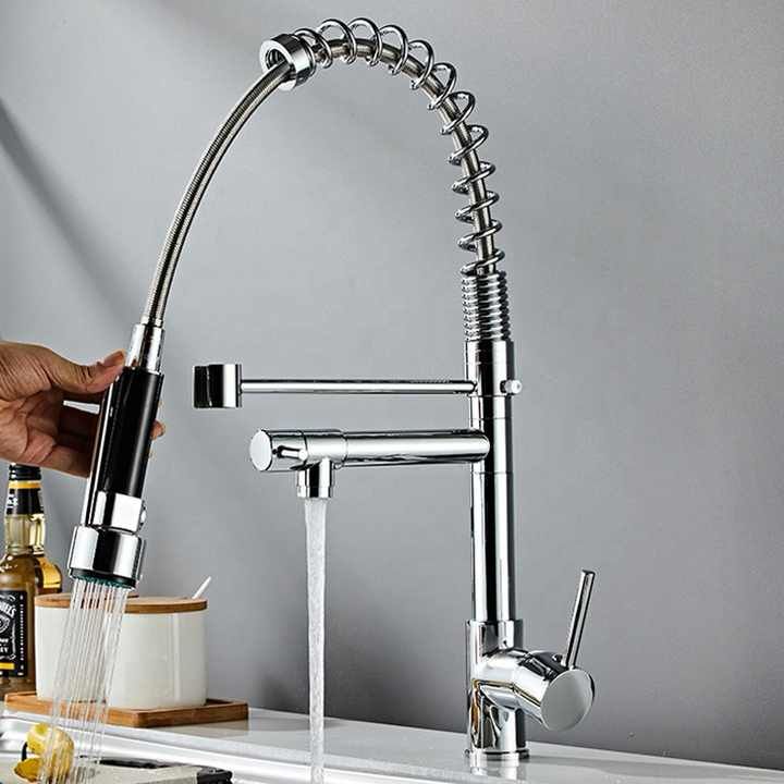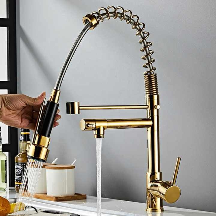 1. This high-arc spring kitchen faucet features a sleek, contemporary design that brings an industrial touch to any kitchen. Built to resist everyday corrosion, it’s easy to clean, dustproof, and durable—perfect for modern homes.