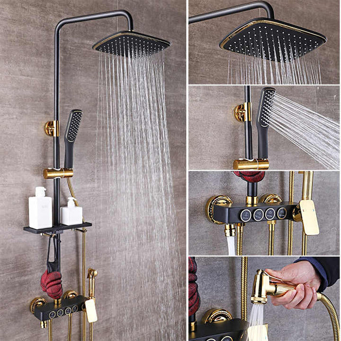 Wholesale Customized Matte Black & White Gold 4-Function Luxury Rainfall Shower System